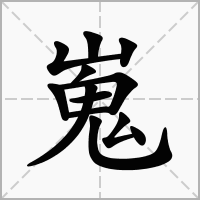 又如:嵬岌(嵬嵬。高耸的样子);嵬崿(险峻);嵬峨(高大的样子);嵬岸(高傲的样子);嵬崔(高耸的样子);嵬崛(高大貌)