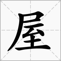 (屋的本义是幄,后来“屋”指房屋,另造“幄”字。会意。从尸,从至。尸,与房屋有关,“至”表示来到。人来到这里居住之意。本义:帐幕。“幄”的本字)