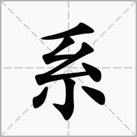 (“系”、“係”、“繫”三字的意义界限不清楚,故往往通用,且经传多以繫为之,只有世系的意义,只用“系”字。会意。甲骨文字形上面是“爪”,下面是“丝”。丝悬于掌中而下垂。本义:悬,挂)