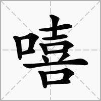 (形声。从口,喜声。本义:叹词。表示赞叹、悲叹或惊惧)