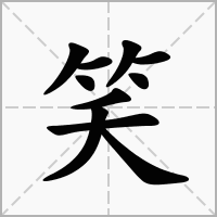 (会意。从竹,从夭。杨承庆曰,“竹得风其体夭屈,如人之笑”。字或从竹,从夭。本义:因喜悦开颜或出声)