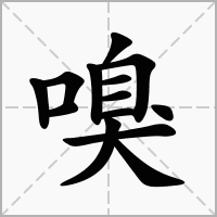(形声。从口,臭声。字本作“臭”,由“犬、自(鼻)”会意,狗的鼻子灵敏,善于闻嗅。本义:用鼻子辨别气味)同本义