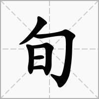 (会意。从勹(bāo)日。甲骨文,上为交叉记号,表示由此开始,后来引长内曲,表示回环周遍。金文又加“日”。本义:十日。古代天干纪日,每十日周而复始,称一旬)