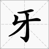 (象形。金文字形,象上下牙齿交错形。“牙”是汉字的一个部首。本义:槽牙)