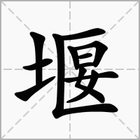 (形声。从土,匽(yàn)声。本义:拦河坝)
