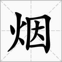 又如:烟霞成癖(有游山玩水的癖好);烟雾尘天(乌烟瘴气;乱七八糟);烟霞帐(绘有山水图画的帐帘帏幕);烟缠(缠绵无力);烟锁(烟雾笼罩);烟娇(美女);烟塍(雾气弥漫田塍);烟蓑雨笠(蓑衣和斗笠);烟月(云雾笼罩的月亮)