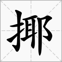 〔揶揄〕耍笑;嘲弄。揄(yú)。