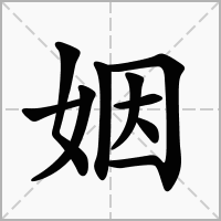 (会意兼形声。从女,从因,因亦声。本义:女婿家)