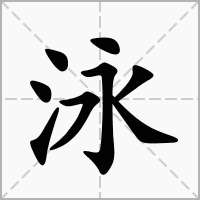 又如:泳涵(涵泳,沉浸);游泳(人或动物在水里游动);仰泳;蛙泳