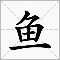 (象形。甲骨文字形,象鱼形。本义:一种水生脊椎动物)