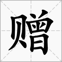 (形声。从贝,曾声。从贝,表示与财富有关。本义:赠送)