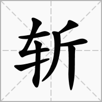 又如:斩伐(砍伐);斩祀(砍伐神祠近旁的树);斩祛(斩断其袖。借指旧怨);斩绝(斩断;断绝);斩断(砍断;切断);斩关(砍断门闩,泛指攻破城门)