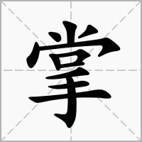 又如:掌上(手掌之上。极言容易);掌上观纹(比喻极其容易,毫不费力);掌文(手掌纹路所呈现的近乎文字的形状)