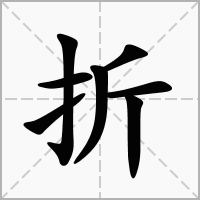 又如:骨折;兰摧玉折;折针儿(断针。比喻不值钱的东西);折伐(拗折砍伐);折首(砍首);折脚铛(断脚锅);折齿(折断牙齿)