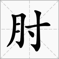 (会意。从肉从寸,寸,腕下“寸口”部位。点明肘所在的范围。本义:上下臂相接处可以弯曲的部位)同本义