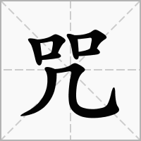 (呪俗作咒。会意。从口从兄。“兄”,“祝”的本字。“祝、呪本同一词。祝愿和诅呪是一件事的两面。本义:祝告)