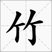 (象形。小篆字形,象竹茎与下垂的叶片。“竹”是汉字的一个部首。从“竹”的字大部分是乐器、竹器和记载文字的东西。本义:竹子)