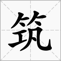 (形声。筑(旧读 zhú),会意兼形声。从竹,从巩(gǒng),巩亦声。竹是乐器,巩是抱持。表示抱持乐器。“筑”是古代乐器名。)