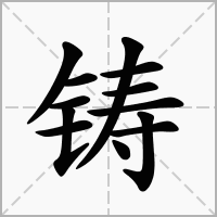 又如:铸印(铸造金属印章);铸冶(销冶金属铸造器物);铸兵(铸造兵器);铸作(铸造);铸金(熔铸金属成物);铸铜(炼铜)
