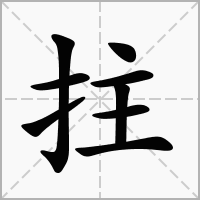 又如:拄杖(执持;支撑着拐杖);拄墙(比喻依靠)