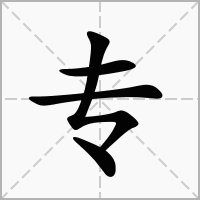 又如:专必(专一不易);专专(用心专一);专愚(用心专一而至不通事情);专节(专一不变的节操);专谨(专一谨慎);专注(专心注意)