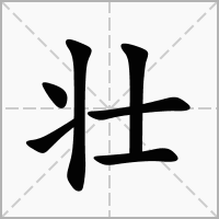 又如:壮武(勇壮,雄武);壮悍(勇壮强悍);壮毅(勇壮刚毅);壮辞(勇壮的言辞)
