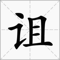 又如:诅让(咒骂责备);诅詈(诅咒;咒骂);诅恨(诅咒怨恨);诅书(诅咒的文字);诅魇(用诅咒来害人);诅祝(祈求鬼神加害于敌对之人);诅师(巫师);诅楚文(又称“诅楚”。指秦王祈求天神克楚兵,收复其边城)