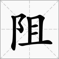 又如;险阻(险要阻塞之地);阻障(障碍);阻寻(排除险阻寻访);阻积(险阻众多)