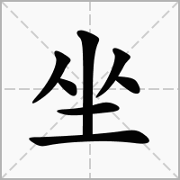 (会意。《说文》古文作象形字,象两人坐在土上。本义:人的止息方式之一。古人席地而坐,坐时两膝着地,臀部压在脚跟上)